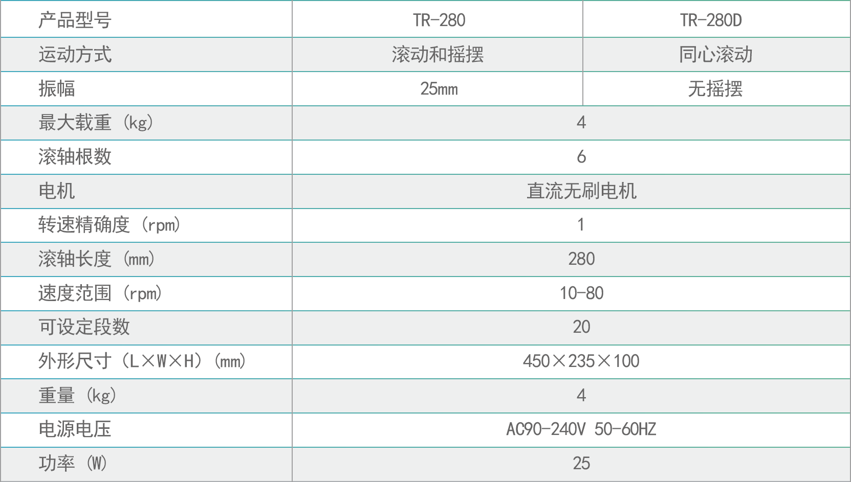 TR-280/TR-280D滾軸混勻儀用于混合血液樣品,粘性物質(zhì)和固液懸浮物等,滾動(dòng)和搖擺兩種模式提供高效和安全的混合,適用于預(yù)防血液凝固,免疫沉淀等相似應(yīng)用。