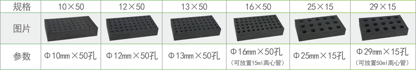 隨機標配12mm泡沫試管架、托盤墊。多種型號的泡沫試管架可供選配。